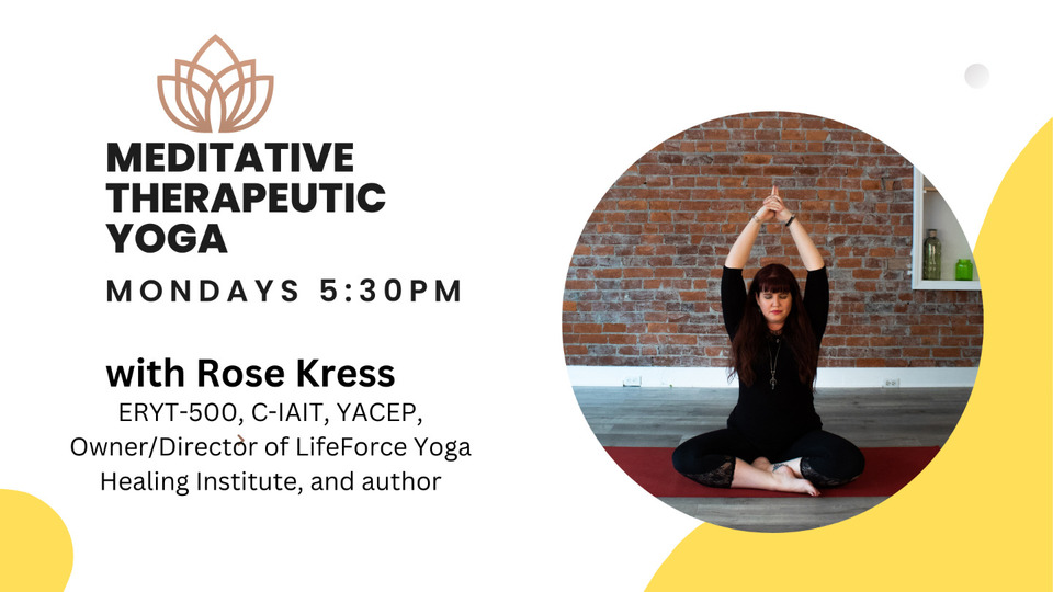 Meditative Therapeutic Yoga is a breath and alignment-based practice. Class begins with a card draw as a theme for the practice, followed by a centering meditation that includes mudra and mantra. Therapeutic postures are dynamically held with a flowing breath to allow the mind to become absorbed in the subtleties of energy and sensation. You’ll leave feeling calmer, stronger, more focused, and aligned with your higher purpose.